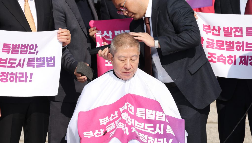 박형준, 국회 앞 삭발까지…부산 글로벌허브도시특별법 제정 촉구