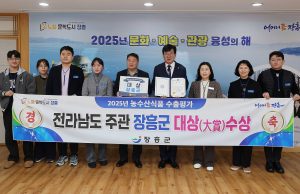 전남 장흥군이 2025년 전남 농수산식품 수출 우수 시·군 평가에서 대상(大賞)을 수상하며 3년 연속 수상...