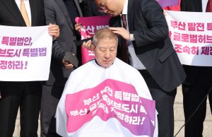 박형준, 국회 앞 삭발까지…부산 글로벌허브도시특별법 제정 촉구
