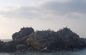 경주시 감포읍 동해안로 해변에서 일출의 광경에 취해 거닐다 바위섬에 나란히 줄지어...