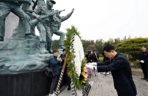 부산 중앙공원 충혼탑 찾아 호국영령 추모…조용한 분위기 속 공식 행보 시작