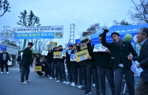 2024학년도 대학수학능력시험이 있는 16일(목) 고사장인 속초고등학교 정문에서는 많은 재학생들과 시민들이 나와 수험생들을 응원하고 있다.