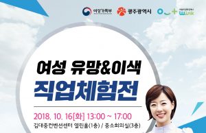 광주광역시는 출산과 양육 등으로 경력이 단절된 여성들의 재취업을 지원하기 위한 ‘여성 유망&이색 직업 체험전’을 10월 16일 김대중컨벤션센터 열린홀과 중소회의실에서 연다고 밝혔다.