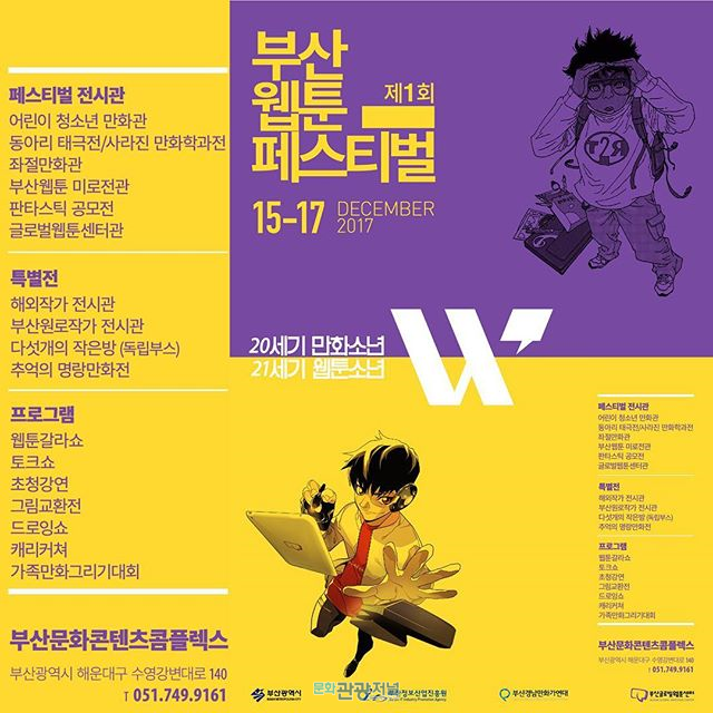 제1회 부산 웹툰페스티벌이 오는 15일부터 17일까지 부산문화콘텐츠콤플렉스(BCC)에서 개최된다.