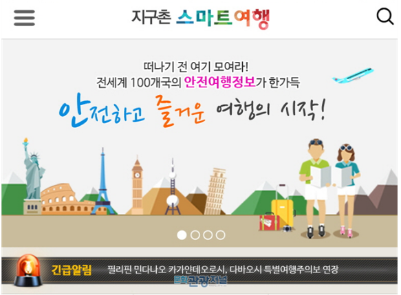 이렇듯 ‘지구촌 스마트여행’ 모바일 서비스는 기존 PC 웹페이지에만 제공된 국외여행 안전정보를 스마트폰 및 태블릿 등 스마트기기에 최적화해 구현한 것으로, 사용자가 실제 여행 중 겪었던 위기상황(여권분실, 물품도난, 자연재해 등) 및 대처법 사례를 업데이트해 보다 생생한 정보를 제공할 예정이다.