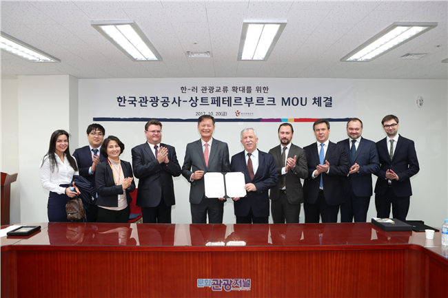 한국관광공사와 러시아 상트 페테르부르크시는 지난 10월 20일 한국관광공사 서울센터에서 관광 협력과 교류 확대에 관한 업무협약(MOU)을 체결했다.