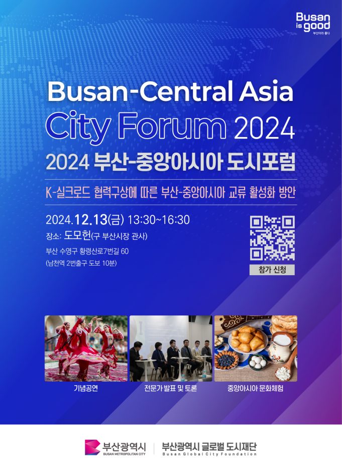 - 12.13.(금), 13:30 도모헌에서 ‘2024 부산-중앙아시아 도시포럼’ 개최