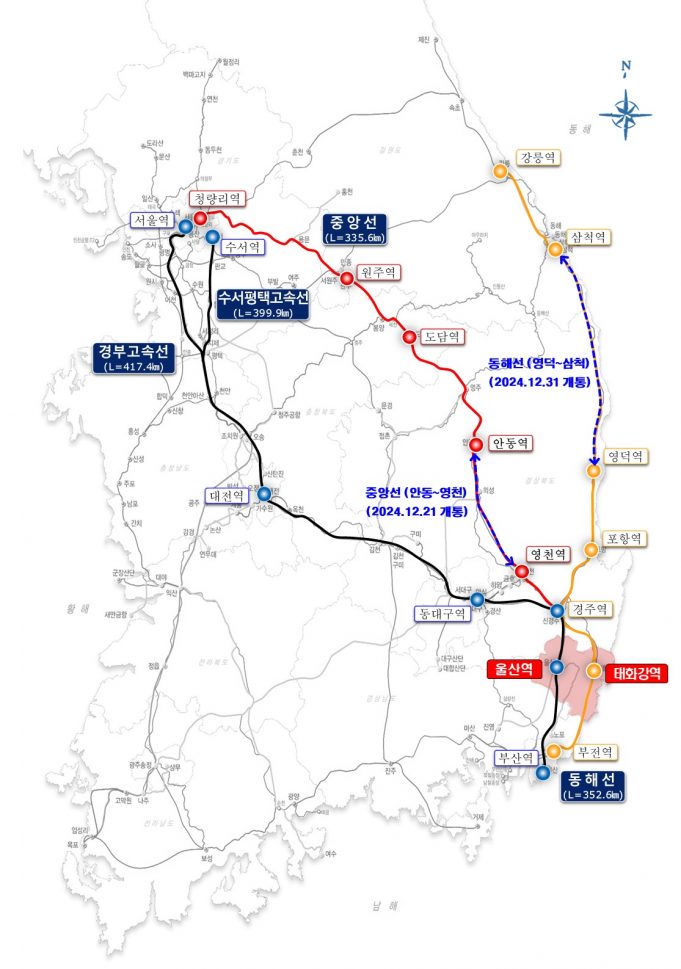태화강역에서 청량리역까지 3시간대 이동 가능해져