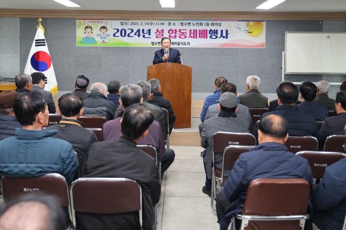 함안군은 갑진년 새해를 맞아 14일 오전 11시 법수면 대표경로당 2층 회의실에서 지역어르신 70여 명을 모시고 합동 세배 행사를 진행했다.