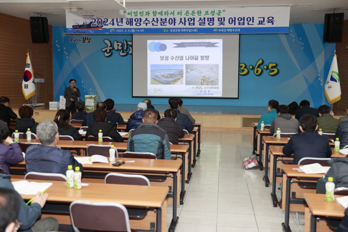 보성군은 지난 5일 어업인 등 수산업 종사자 200여 명을 대상으로 보성군청 4층 대회의실에서 ‘2024년 해양수산사업 설명 및 어업인 교육’을 개최했다.