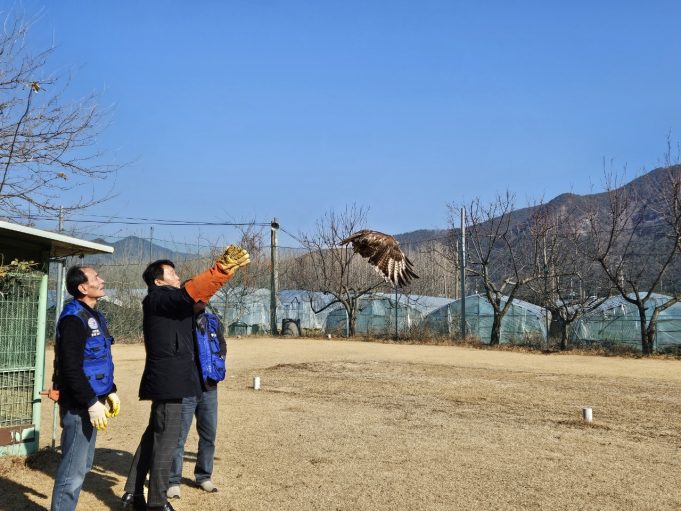 한국조류보호협회 밀양시지회(회장 곽재호)가 지난 26일 밀양강 일원에서‘2024 새해맞이 매 자연 방사’를 실시했다.