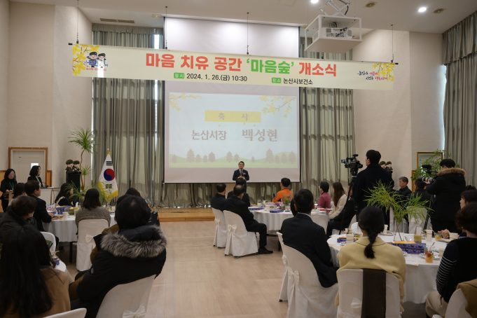 논산시(시장 백성현)는 정신건강 문제와 자살률을 낮추기 위해 보건소 1층에‘마음숲’이라는 힐링 공간을 26일 개설했다. 마음숲은 눈물체험공간, 애도공간, 상담공간으로 구성되어 있으며, 자살유족원스톱서비스 거점센터도 함께...