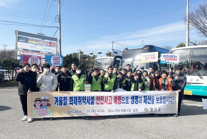 이날 캠페인에는 함안군, 함안소방서, 함안지방공사, 안전보안관 등 30여 명이 참여했으며, 전통시장을 찾은 군민들을 대상으로 △화재취약시설 안전사고 예방교육 및 홍보 △‘겨울철 재난·안전위험요인 집중신고제’ 등의 내용을 적극적으로 홍보했으며 재난예방...