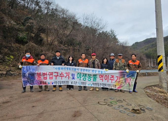 의령군은 겨울철 야생동물 출현 빈도가 높은 지역인 유곡면 덕천리 일원에서 불법 엽구 수거와 동시에 야생동물 먹여주기 행사를 진행했다고 24일 밝혔다.