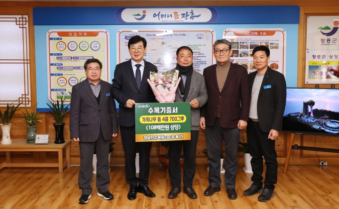 장용기 정남진수목원 대표가 24일 조경수 700그루를 장흥군 나무은행에 기증했다.