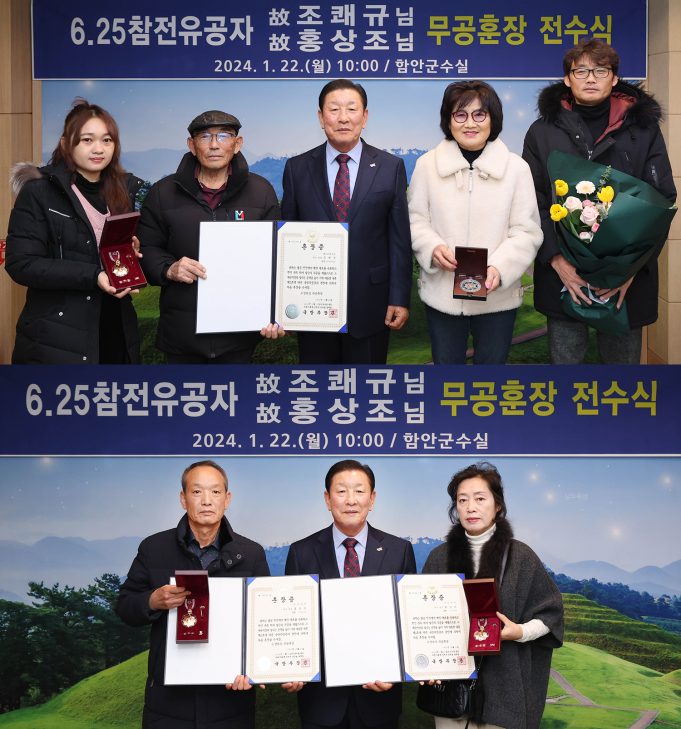 함안군은 지난 22일 군수실에서 6.25전쟁 참전유공자 故조쾌규, 故홍상조의 무공훈장 전수식을 가졌다.