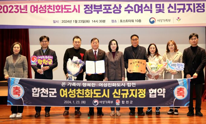 합천군(군수 김윤철)은 23일 서울 포스트타워에서 여성가족부와 여성친화도시 신규지정 협약을 체결했다.