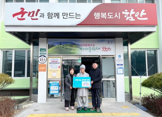 함안군 산인면 동광사(주지 덕운스님)는 지난 3일 산인면사무소를 방문해 어려운 이웃을 위한 성금 100만 원을 기탁했다. 기탁된 성금은 군내 저소득계층 등 어려운 세대에 지원될 예정이다.
