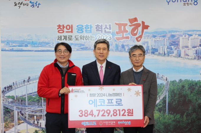 에코프로는 28일 포항시청을 방문해 희망 2024 나눔캠페인 성금 3억 8,400만 원을 기부했다.