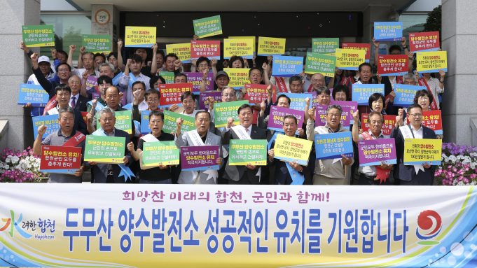 합천군 두무산 양수발전소 유치추진단과 군민의 하나된 염원이 기어코 희망찬 미래의 합천 건설을 위한 주춧돌을 놓았다.