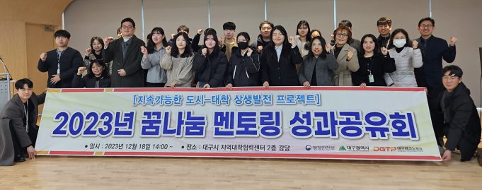 대구광역시는 12월 18일(월) 오후 2시, 대구행복기숙사 2층 강당에서 ‘2023년 대학생 멘토링 사업 성과공유회’를 개최했다.