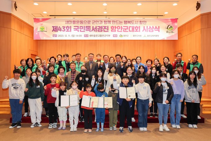 새마을문고 함안군지부(회장 진학상)는 지난 11일 새마을회관 회의실에서 조근제 함안군수, 곽세훈 함안군의회 의장, 새마을 관계자, 문고 지도자, 수상자, 지도교사, 학부모 등 80여 명이 참석한 가운데 ‘제43회 국민독서경진 함안군대회’ 시상식을 개최했다.