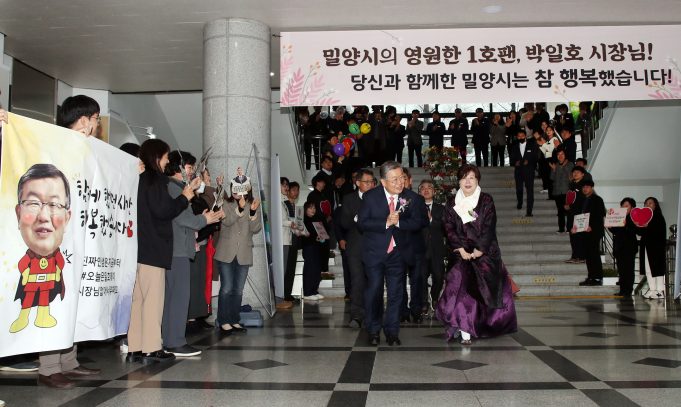 밀양시는 11일 오전 11시 시청 대강당에서 ‘열린 행복도시, 힘찬 미래도시 밀양’ 건설을 위해 10여 년간 헌신해 온 박일호 시장의 퇴임식을 개최했다고 밝혔다.