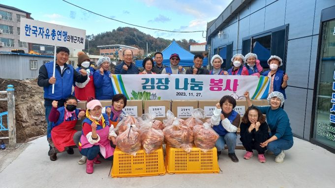 한국자유총연맹 의령군지회(회장 하만우)는 지난 27일 의령어머니도시락에서 2023년 지역사랑 김장나눔 봉사활동을 펼쳤다. 이번 봉사활동은 회원들이 배추 수확부터 김장담그기까지 오롯이 회원들의 봉사로 이루어져 더 의미있는 김장나눔 행사가 되었다.