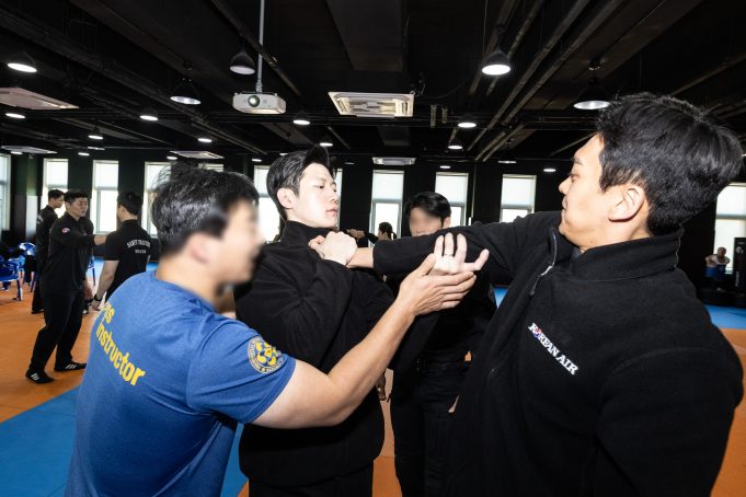 대한항공이 객실안전교관을 대상으로 대통령경호처 경호안전교육원 위탁 교육을 실시했다고 27일 밝혔다. 최근 늘어나는 기내 난동 행위에 보다 적극적으로 대처하고 승객 안전을 지키기 위해서다.