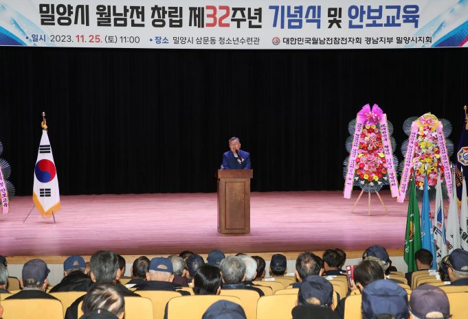 밀양시 월남전참전 창립 32주년 기념식 및 안보교육이 25일 밀양시청소년수련관에서 보훈단체장 등 200여 명이 참석한 가운데 개최됐다.