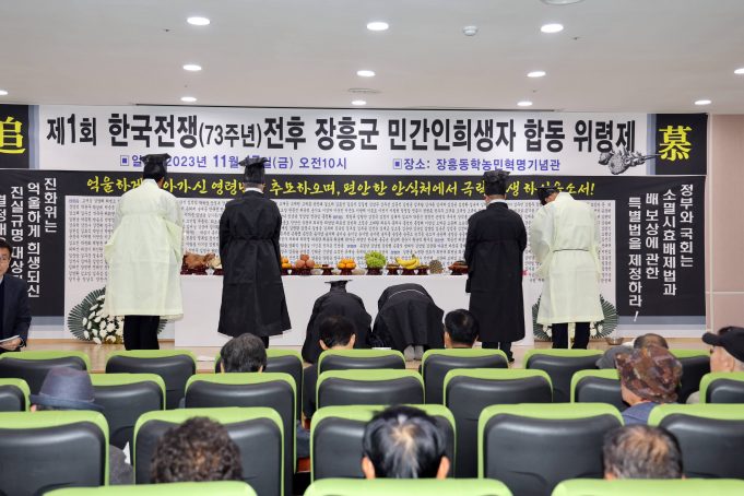 장흥군은 지난 17일 장흥동학농민혁명기념관에서 ‘제1회 한국전쟁전후 장흥군 민간인희생자 합동위령제’가 거행했다고 밝혔다.