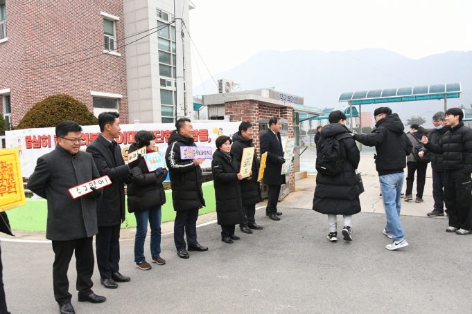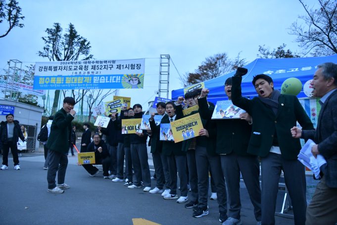 2024학년도 대학수학능력시험이 있는 16일(목) 고사장인 속초고등학교 정문에서는 많은 재학생들과 시민들이 나와 수험생들을 응원하고 있다.