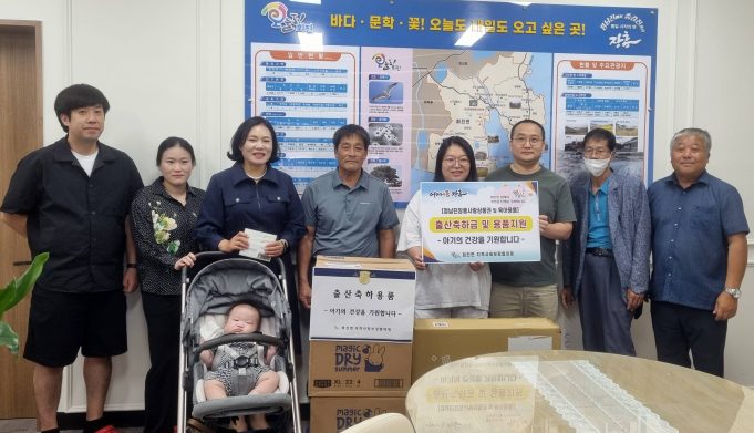 장흥군 회진면 지역사회보장협의체(공동위원장(노영금, 강현갑)가 지난 12일 행정복지센터에서 올해 출생신고를 한 4가구에 정남진사랑상품권 및 출산 축하용품을 전달했다.