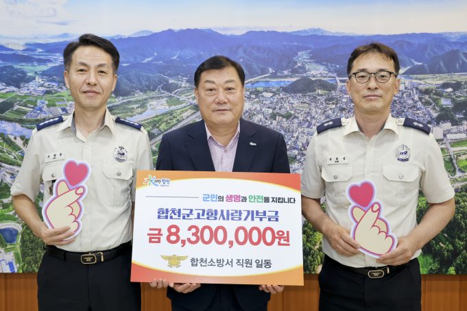 합천군은 11일 합천소방서 직원 83명이 합천을 응원하는 마음을 담아 고향사랑기부금 830만원을 기탁했다고 밝혔다.