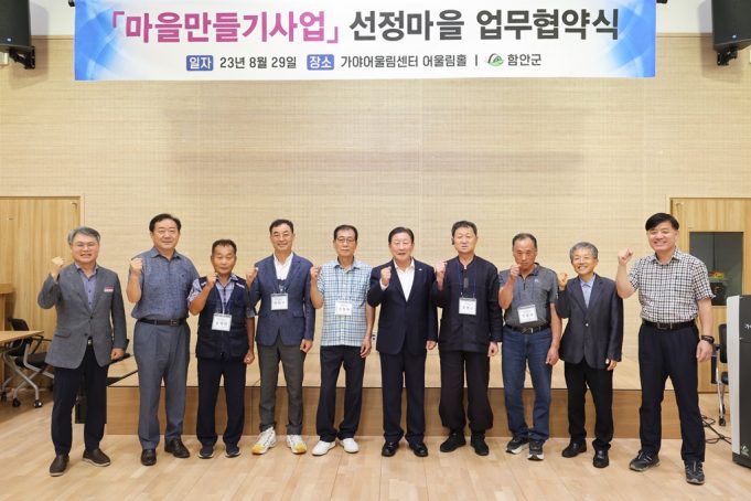 함안군은 지난 29일 가야읍 가야어울림센터 어울림홀에서 상반기에 선정된 마을만들기 사업 5개 마을을 대상으로 지속발전가능한 마을조성을 위한 업무협약식을 개최했다.