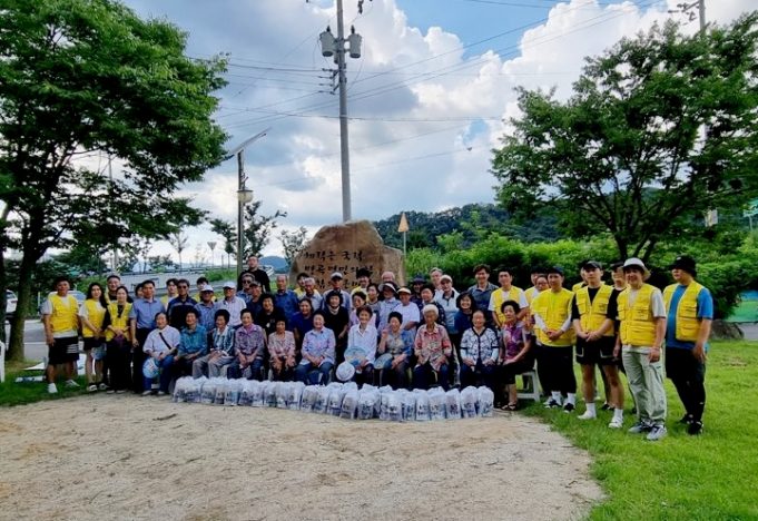 함양군 청년봉사단 ‘행복한 한끼’는 8월 3일 병곡면 등구정체육공원의 소나무 숲에서 휴촌마을 주민들과 병곡면 노인게이트볼 회원들 50여명에게 치킨과 선물꾸러미를 전달했다.