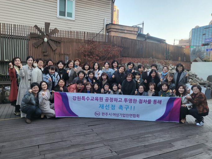 원주시여성기업인연합회(회장 정유아)는 지난 15일 열린 월례회의에서 “강원특수교육원을 공정하고 투명한 절차를 통해 다시 선정하라”고 촉구했다.