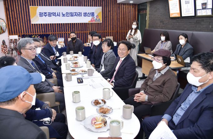 강기정 광주광역시장은 23일 오후 새로 문을 연 시니어카페 ‘모어레스’에서 정책소풍을 열고 어르신들의 보람 있고 든든한 노후를 위한 일자리창출 방안에 대해 논의했다.