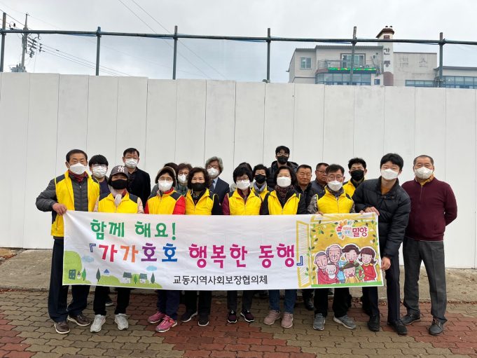 밀양시 교동지역사회보장협의체(위원장 장정애)는 23일 교동사거리 일원에서 지역 주민들에게 사회복지서비스를 안내하고 복지사각지대 발굴을 독려하는 ‘가가호호 행복한 동행’ 캠페인을 실시했다.