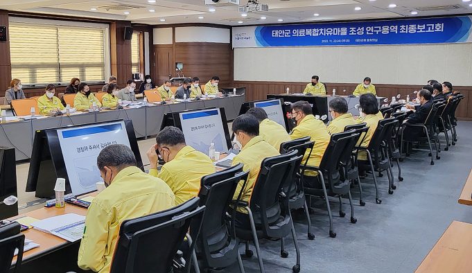 군은 지난 23일 군청 중회의실에서 가세로 태안군수를 비롯한 간부공무원과 김기두․김종인․김홍회․김기일․명제국 자문위원 등 30여명이 참석한 가운데 ‘태안군 의료복합치유마을...