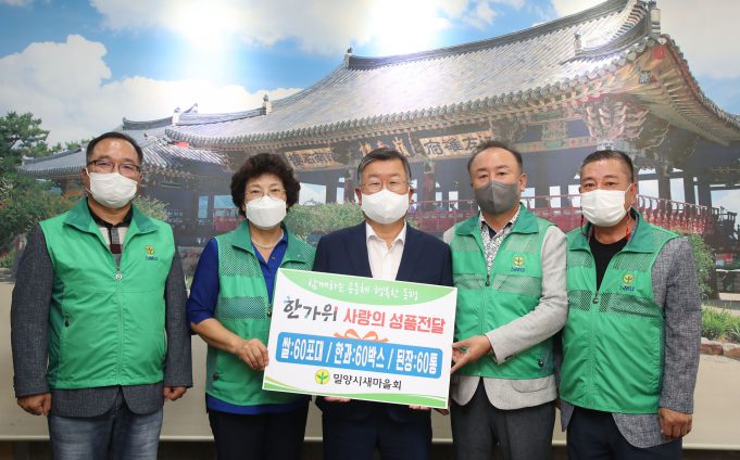 밀양시새마을회(회장 김호근)는 5일 밀양시새마을회관에서 새마을회장단과 읍면동 새마을지도자협의회장·부녀회장 등 25여 명이 참석한 가운데 지역사랑과 이웃사랑의 실천 방안으로 ‘추석맞이 사랑의 성품 전달식’을 가졌다.