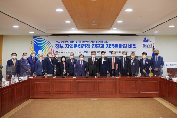 한국문화원연합회(회장 김태웅, 이하 연합회)는 8월 31일(수) 오후 2시‘한국문화원연합회 창립 60주년 기념 정책세미나’(이하 정책세미나)를 국회 의원회관 제9간담회실에서 박 정 국회의원과 함께 공동개최했다.