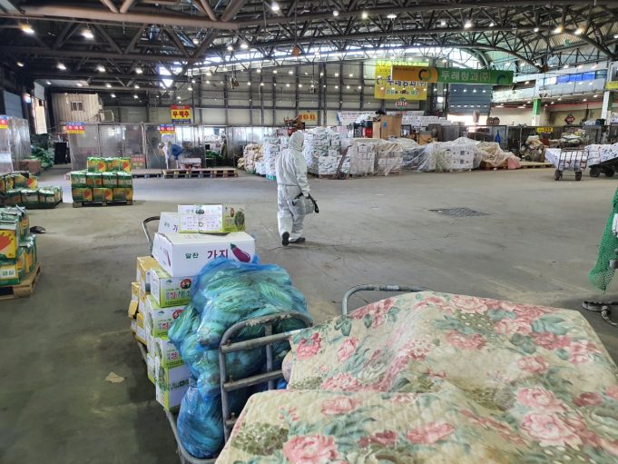 지난 1일 도매시장에서 첫 확진자가 나온 이후 확진자가 활동했던 판매장 등을 긴급 폐쇄...