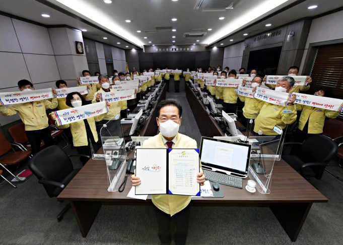 영천시(시장 최기문)은 22일 오전 시청에서 최기문 시장 이하 간부 공무원 46명이 참석한 가운데 반부패 청렴 서약식을 개최했다.