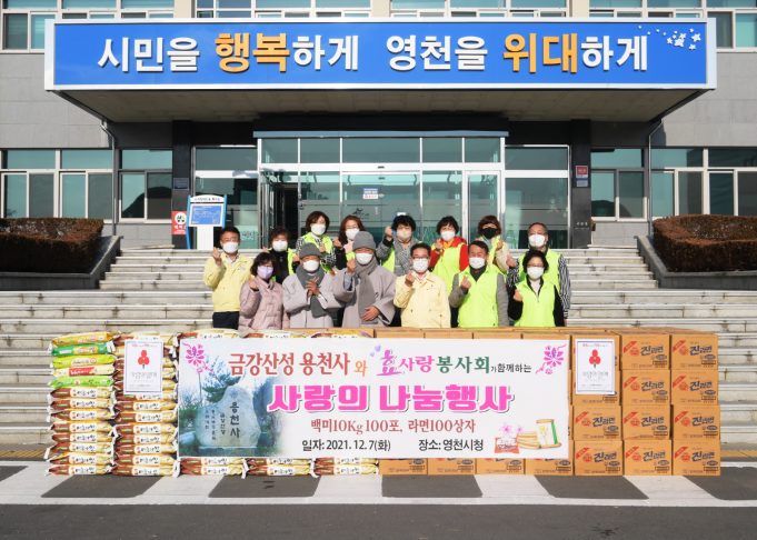 효사랑봉사회(회장 윤영한)와 영천 용천사(벽봉 주지스님)에서 지난 7일 연말을 맞아 라면 100박스와 백미 100포(500만원 상당)를 영천시에 기탁했다.