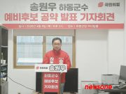 기업인 출신 송원우 하동군수 예비후보가 9일 오후 하동군청 브리핑룸에서 기자회견을 열고 지역...