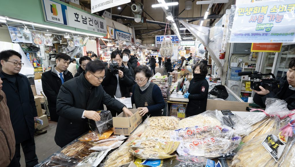 김성범 장관 직무대행, 마포농수산물시장 찾아 성수품 수급·온누리상품권 환급 행사 확인