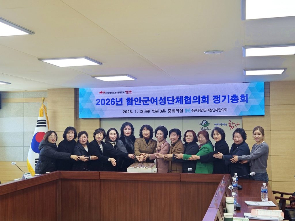 함안군은 지난 22일 함안군여성단체협의회가 군청 3층 중회의실에서 2026년도 정기총회를 개최했다고 밝혔다. 이날 총회에는 석욱희 함안부군수와 이만호 함안군의회 의장, 조인제 경남도의회 의원, 안말남 함안군의회 부의장 등 주요 내빈을 비롯해 협의회 소속 12개 단체 임원과 회원 40여 명이 참석했다.