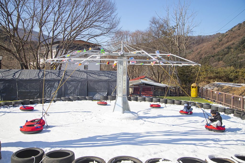 겨울에는 마을에서 운영하는 ‘어비계곡 겨울나라’ 행사가 열려 설경에 즐길 거리를 더한다. 마을 주차장에서 행사장까지는 약 470m로, 계곡을 따라 데크길이 이어져 있어 얼어붙은 계곡과 눈 덮인 숲을 감상하며 걷기 좋다. 행사장에는 아이들에게 인기 있는 회전눈썰매와 팽이치기, 투호 등을 즐길 수 있는 전통놀이존이 마련돼 있다. 도로 건너편의 얼음썰매장에서는 썰매를 타고 끄는 모습 속에서 자연스럽게 동심이 되살아난다.