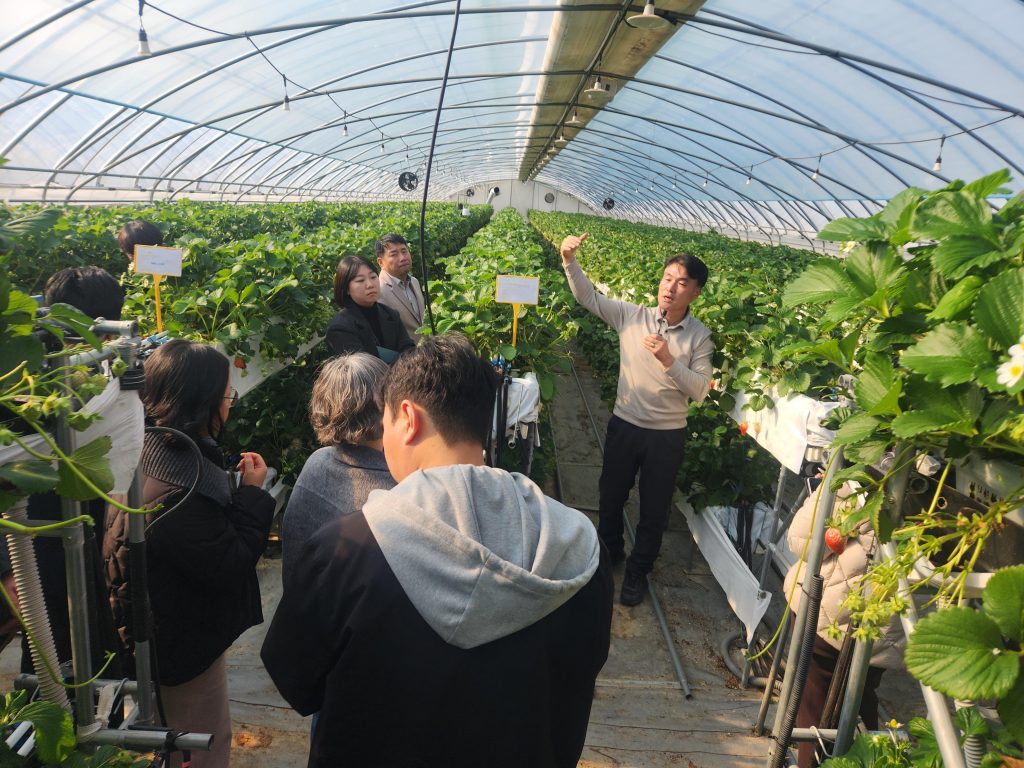 이날 설명회에서는 LED 적용 딸기 다단재배 시범사업 추진 방향을 비롯해 재배 기술 교육과 지역별 사업 추진 계획에 대한 논의가 이어졌다. 참석자들은 이후 논산시 부적면의 딸기 재배 농가를 찾아 LED 보광등과 다단 재배 시설이 설치된 현장을 직접 둘러보며 기술 적용 사례를 확인했다.